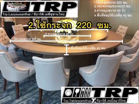 เทียบขนาดโต๊ะหมุน จำนวนที่นั่ง ขนาดกระจกหมุน ขนาดรางหมุน
